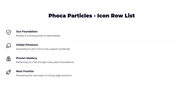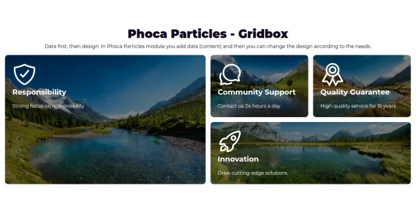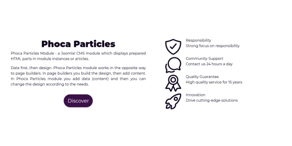 Die folgende Dokumentation beschreibt die einzelnen Phoca Particles Typen und listet die spezifischen Formularfelder auf, die zu ihrer Konfiguration verwendet werden.