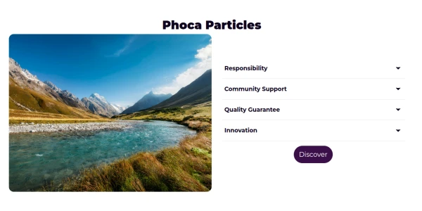 Kombiniert ein statisches Bild mit einer interaktiven Akkordeon-Anzeige für erweiterbare Inhalte.